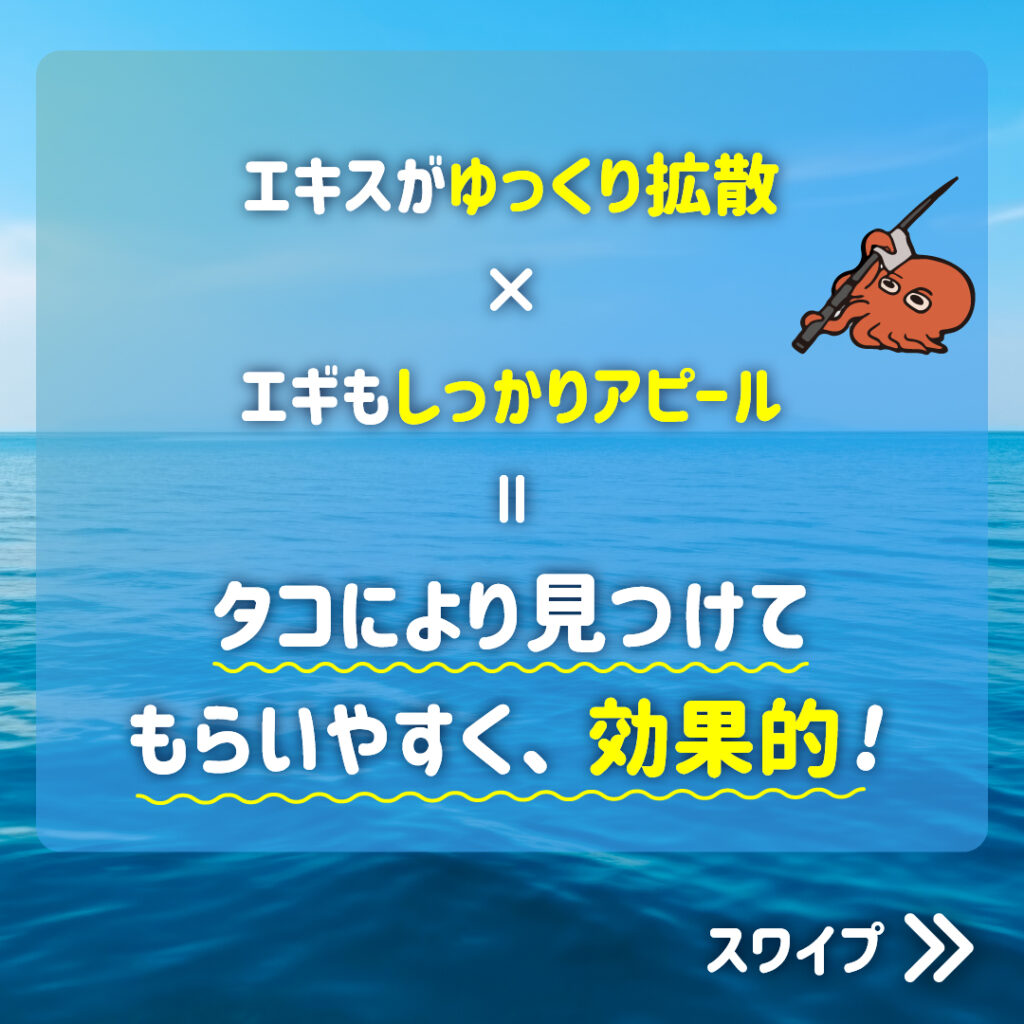 =エキスで寄ってきたタコにエギを見つけてもらいやすい!