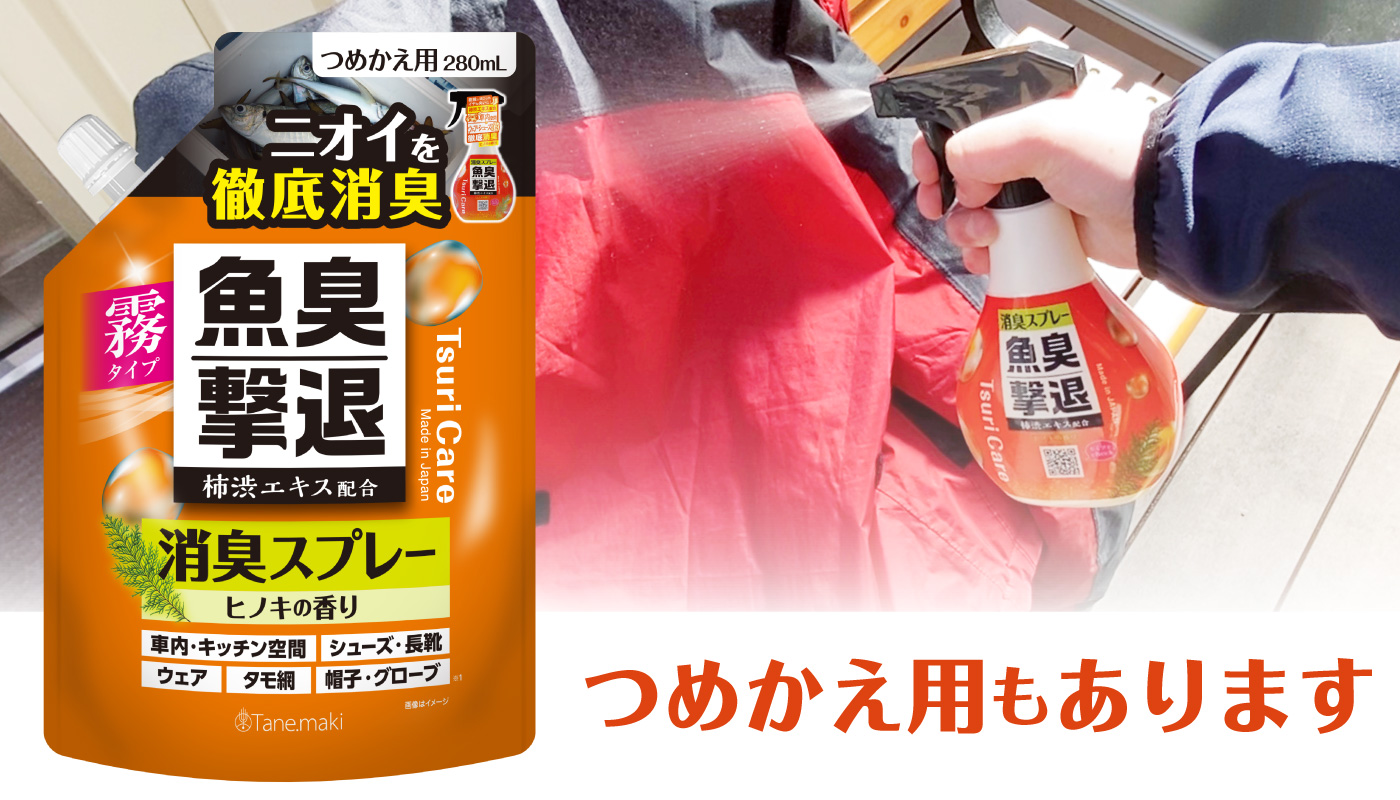 ・車内空間・ウェア・シューズなどから臭う魚臭にシュッとスプレーして消臭。